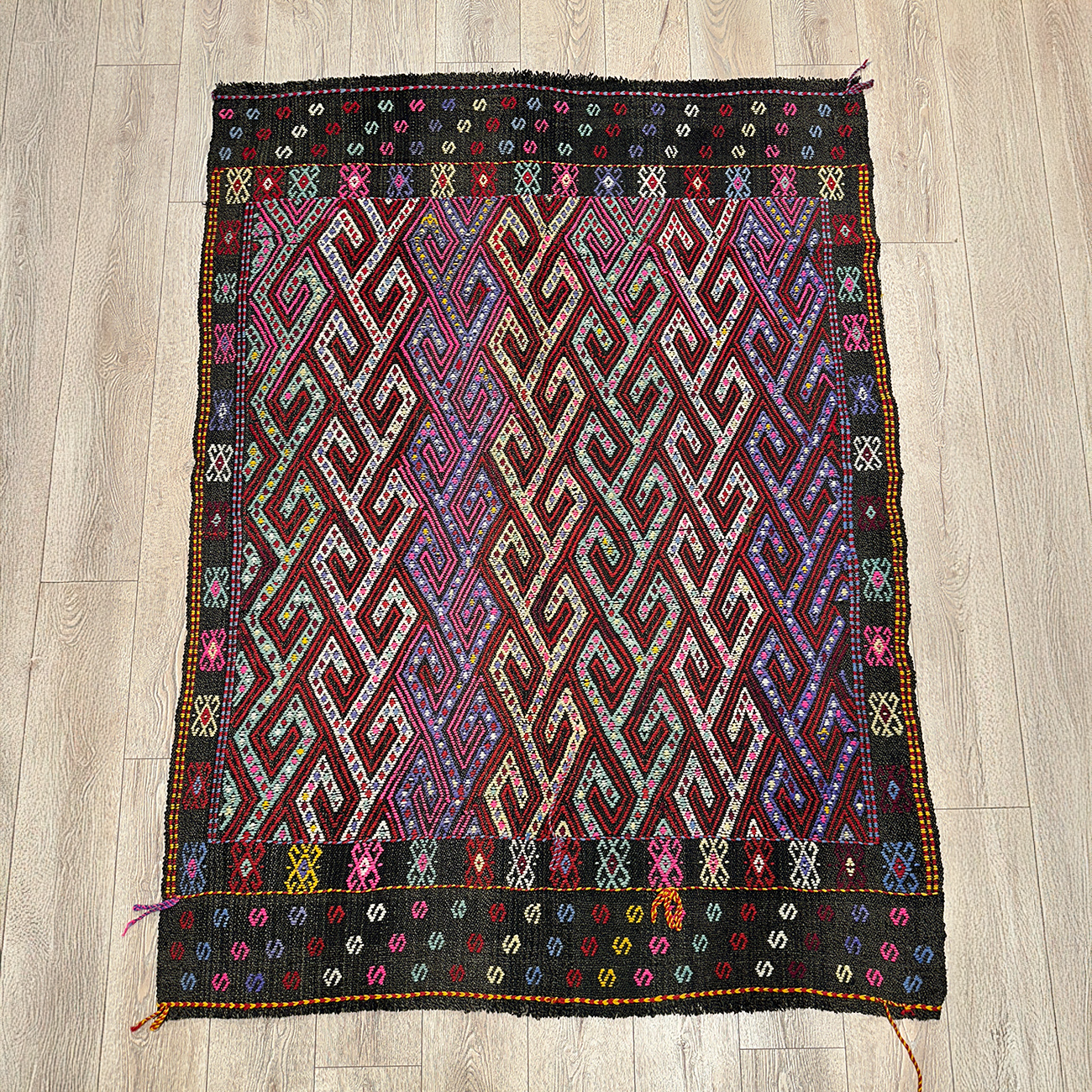 Antique Denizli Kilim Rug – 132×212 cm | Handwoven Wool Anatolian Carpet
